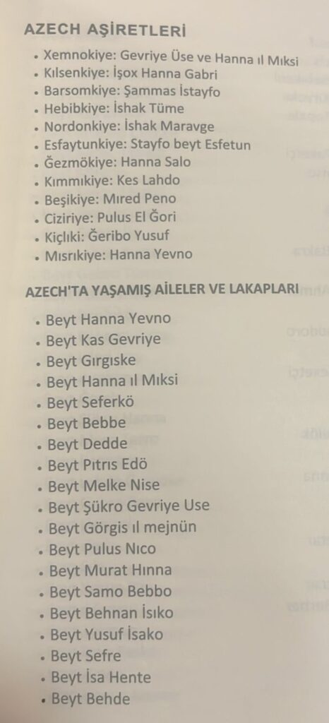 - Patronymic Naming: Individuals were often known by patronymics (e.g., "Shmuel son of Ya'qub") or by their Be affiliation (e.g., "Gabriel Shem'un dBe Haydo"). Different families within the same large clan might use varying descriptive names or honorifics, leading to a diversity of informal surnames.