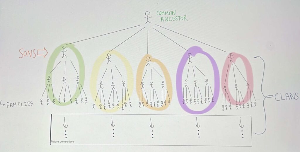 2. The Sons (The First Division): From this common ancestor emerge his Sons. This marks the first major division in the lineage, as each son becomes the progenitor of a distinct branch of the expanding family tree. Crucially, these sons often lend their names to what will eventually become the powerful Clans of a village, laying the groundwork for the its socio-political structure.