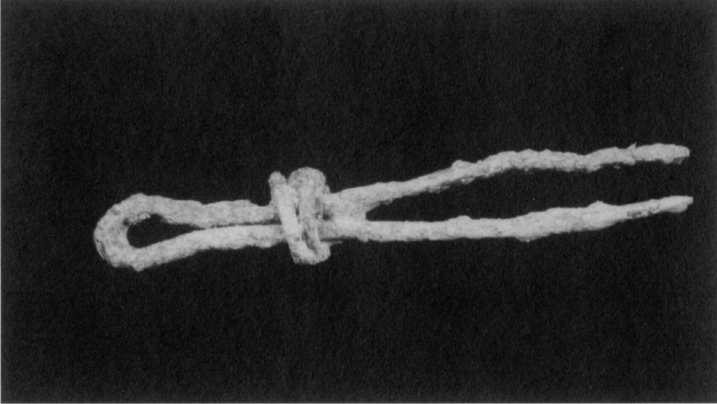 In total, the excavation uncovered at least thirteen individuals designated skeletons A and 1 through 12 as well as the remains of a horse. The skeletal material was primarily excavated in 1990 by Marianne Marek, with osteological analyses prepared by Dr. M. Domurad and subsequently by Dr. Ethne Barnes. The detailed osteological examinations reveal individuals ranging from a ten-month-old infant to a seasoned warrior of approximately 35 to 40 years of age. Skeleton 1 is an adult male, 30 to 35 years old and 174 cm tall, who was found sprawled face downward with six broken ribs, a damaged right arm, and broken fingers; the habitual kneeling stress in his right elbow and the ball of his left foot indicate that he was an archer. Skeleton 2 is a pre-adolescent male, only 12 to 13 years of age and small for his size, with knife wounds above the eye and a fractured skull. Skeleton 3, an adult male 22 to 24 years old and 180 cm tall, had a fragmentary socketed iron spear beneath him and a bronze trilobate arrowhead next to his femur; lumbar lesions were attributed to brucellosis, a bacterial infection derived from goat milk products. Skeleton 4 was a pre-adolescent 11 to 12 years old, tall for his age, with a copper or bronze earring near the left ear and a bronze trilobate arrow embedded in his left fibula; a total of six arrowheads were found in the vicinity of this single individual. Skeleton 5, an adult male 35 to 40 years old and 172 cm tall, was possibly the oldest individual at the gate, with arthritis, periodontal disease, stab wounds in the back and through the lower right ribcage, and both legs fractured as well as numerous old, healed injuries indicating that he was a seasoned warrior. Skeleton 6, an adolescent male 17 to 18 years old, carried beneath his body a fine translucent pale-blue chalcedony conoid stamp seal with an attached bronze elbow fibula; a silver earring in the form of an inverted crescent suspended below a disc lay beneath the left wrist. Skeleton 7, an adult male 35 years old and 168 cm tall, was found face down on the pavement with cut marks on the left side of the skull, stress patterns indicating he too was an archer, and several old, healed wounds. Skeletons 8 through 11 represent a cluster of younger people found toward the rear of the entrance passage: a child 7 to 8 years old whose back appears to have been broken, with a silver earring near the right ear; an 11 to 12-year-old whose arms were burnt by falling debris; an infant of just ten months; and a child of three years the two youngest to die in the Halzi Gate conflagration. Skeleton 12, an adult male 27 to 30 years old and 166 cm tall, had cuts in the skull and a penetrating wound through the lower right abdomen caused by a blunt weapon; stress injuries of the right shoulder and hand suggest military duty.